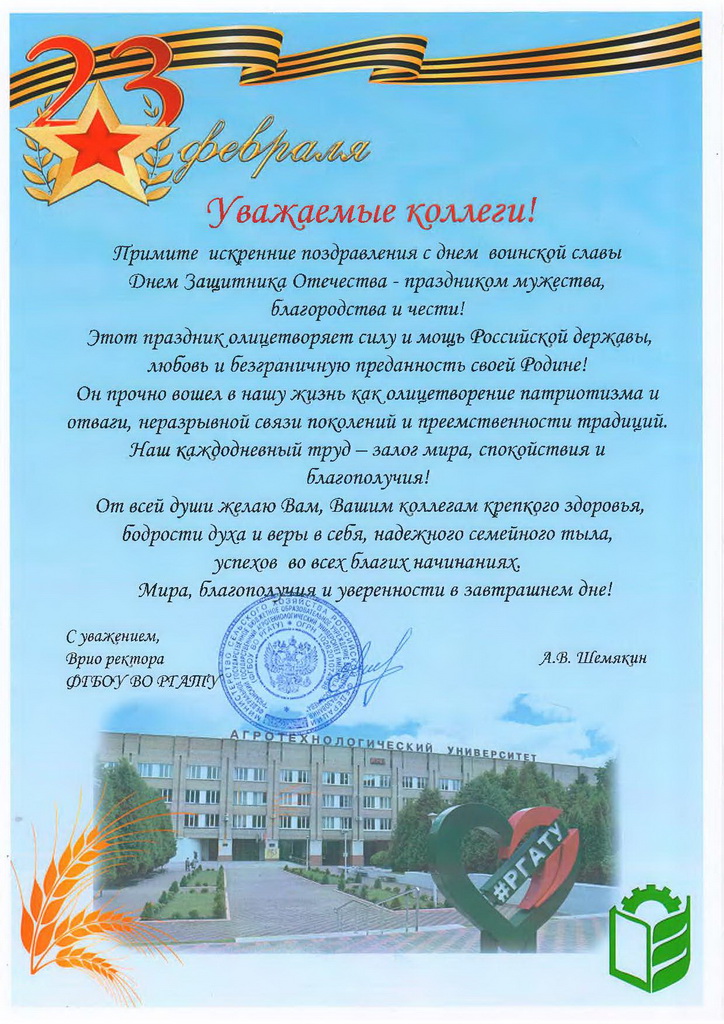 | Федеральное государственное бюджетное образовательное учреждение высшего образования "Рязанский государственный агротехнологический университет имени П.А.Костычева" | |||||