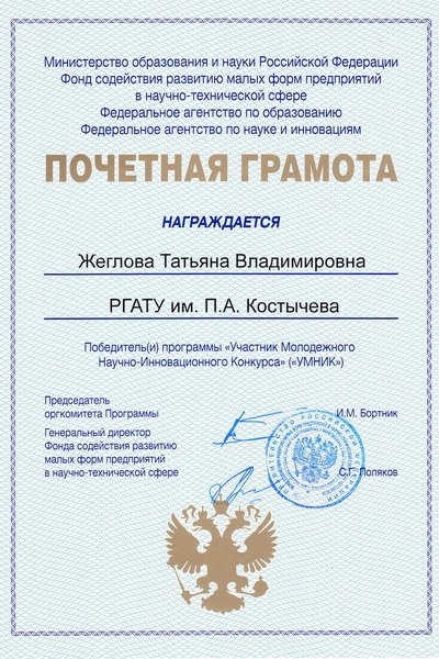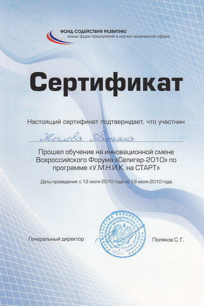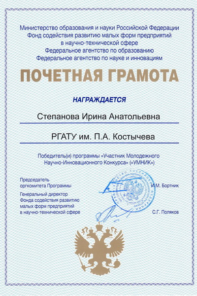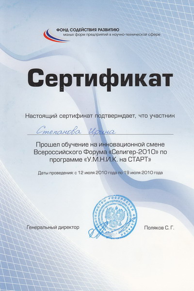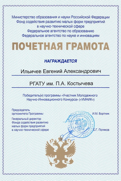 В марте 2010 году были выиграны гранты по программе «Участник Молодежного Научно-Инновационного Конкурса» («У.М.Н.И.К.»):