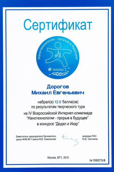 В 2010 году был выигран конкурс «СТАРТ» и заключен государственный контракт на выполнение НИОКР по теме «Разработка биологически активных препаратов на основе ультрадисперсных порошков металлов железа, кобальта и меди, способствующих повышению урожайности и качества сельскохозяйственной продукции в растениеводстве».