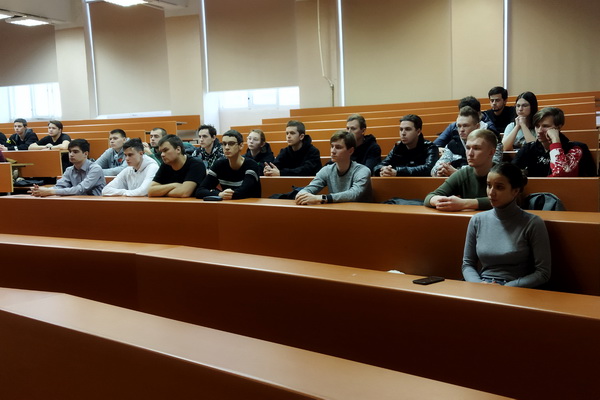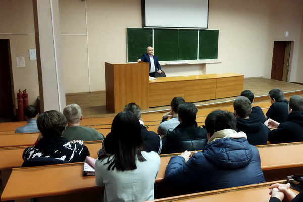 Со студентами старших курсов направлений подготовки "Электроэнергетика и электротехника" и "Агроинженерия" (профиль "Электрооборудование и электротехнологии") разговор вел заместитель главного инженера – начальник управления производственной безопасности и производственного контроля предприятия Е. В. Зубков.
