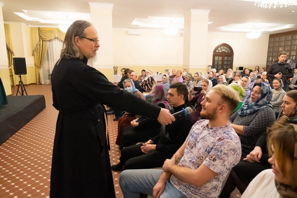 Владыка рассказал о различных подходах к изучению Евангелия и обратил внимание на первостепенную важность языка, на котором излагается текст, на то, что многие слова при переводе искажаются и теряют полноту своего исконного значения и ясности. Также студенты узнали и о других аспектах, связанных с чтением и пониманием Нового Завета. В частности, митрополит Марк подробно говорил об особенностях каждого из четырех Евангелий и об их авторах.