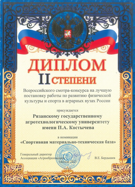 Рязанский государственный агротехнологический университет имени П.А. Костычева занял II место в номинации "Спортивная материально-техническая база".