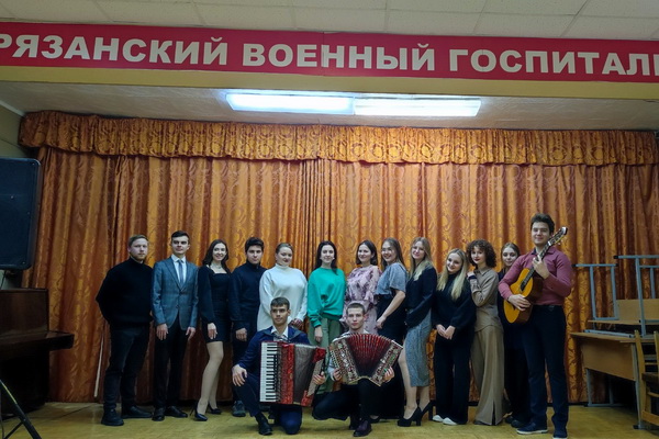 23 ноября 2023 г. участники творческих студий студенческого дворца культуры Рязанского государственного агротехнологического университета имени П.А.Костычева с целью поддержки военнослужащих, проходящих лечение вРязанском военном госпитале,организовали концерт для раненых. Бойцы очень тепло встретили артистов.