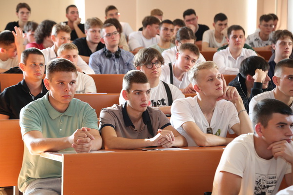 В первый день учебы в стенах вуза царила оживленная, праздничная атмосфера. Для всех первокурсников день начался со знакомства с руководством, преподавателями и кураторами факультета, ребятам вручили студенческие билеты, рассказали про студенческие объединения, которые функционируют в вузе. И многие кураторы постарались показать своим подопечным учебные аудитории для занятий.