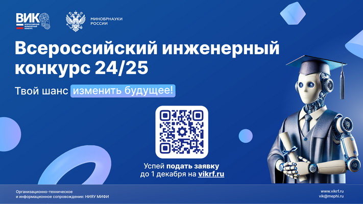 1 октября 2024 года открывается приём заявок на Всероссийский инженерный конкурс, организуемый Минобрнауки России совместно с отраслями-лидерами высокотехнологичной индустрии с 2014 года в соответствии с поручением Президента России.