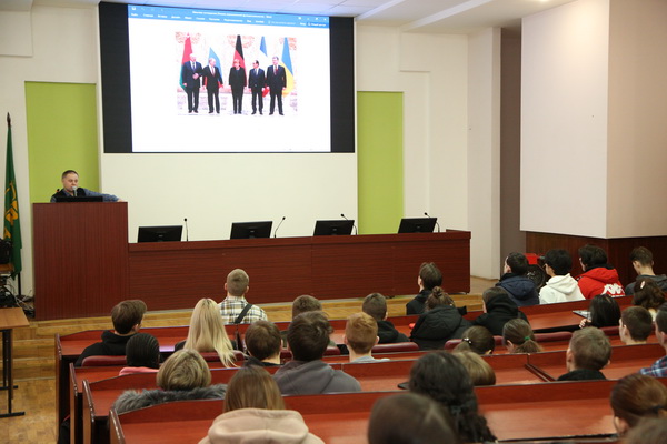 На лекции разговор шел о взаимоотношениях России и Украины, о правовых аспектах ситуации, сложившейся на Украине, об исторических особенностях возникновения украинского конфликта, а так же его социальных и экономических причинах и последствиях.