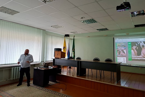 У студентов 4 курса факультета ветеринарной медицины и биотехнологии Рязанского ГАТУ по дисциплине "Акушерство и гинекология" были проведены бинарные занятия со специалистами крупных холдингов: Лазаревым Игорем Сергеевичем, старшим технологом ООО "Вердазернопродукт", и главным ветеринарным врачом рязанского подразделения ГК "ЭкоНива" Клочковым Александром Александровичем.
