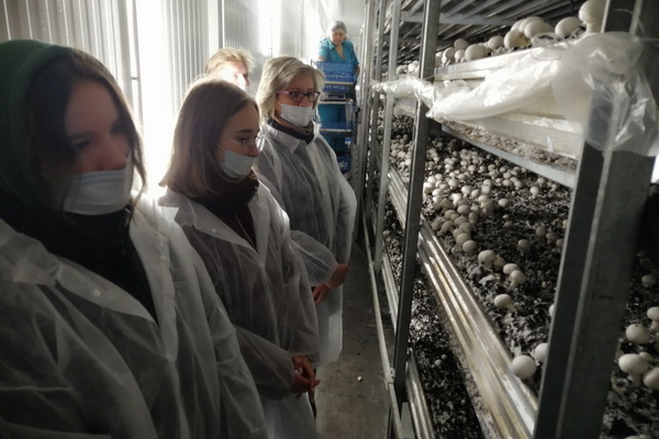 В ходе посещения производственного комплекса было показано будущим агрономам разные этапы роста грибов, начиная от загрузки компоста, формирования мицелия (грибницы) до зон сбора готовых грибов и их шокового охлаждения. На складе готовой продукции студенты увидели процесс фасовки грибов в контейнеры для реализации в торговых сетях. Также руководство предприятия показало оборудование и системы управления комплекса. Студенты увидели климатические установки, отвечающие за работу всего комплекса, которые до них не показывали никому.
