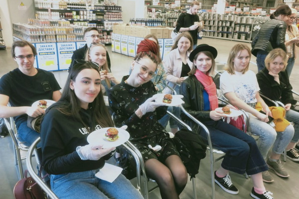 Студенты стали не только внимательными зрителями, но и приняли активное участие в процессе приготовления бургера, задавали вопросы, и, конечно же, дегустировали кулинарное изделие.