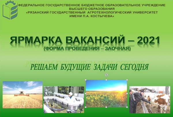 С 25 по 30 ноября 2021 г. в Рязанском государственном агротехнологическом университете имени П.А.Костычева в формате on-line прошла ежегодная Ярмарка вакансий, основная цель которой - содействие в трудоустройстве выпускников университета.