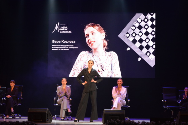 На протяжении всего вечера представительница Рязанского агроуниверситета Вера Козлова демонстрировала свой артистизм, грацию, красоту, ораторское умение и дарила зрителям много улыбок.