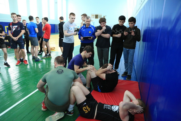 В соревнованиях участвовали команды шести факультетов университета. Ребят ждали: рывок гири в 16 кг, жим-лежа от пола, разборка-сборка Ак-74М, снаряжение магазина патронами, бег в противогазе, надевание ОЗК, оказание медицинской помощи и транспортировка раненого и перетягивание каната.