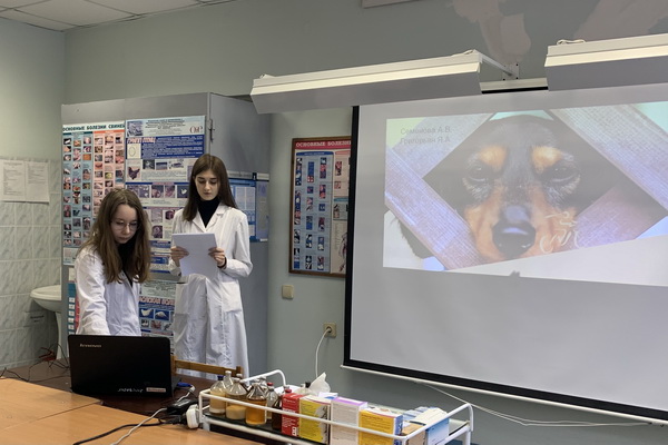 В этот день студенты выступали с докладами и презентациями. Разговор шел об особенностях поведения питомцев, их содержании, профилактике и о том, как помочь животным, если вдруг они заболеют. Студенты с увлечением и интересом рассказывали про собаку породы "такса", мэй-куна, хорька, улыбчивого белоснежного друга-самоеда, про хозяина дома - ослика, делились опытом по созданию благоприятных комфортных условий для проживания и правильного кормления животных.