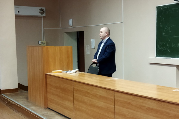 Со студентами старших курсов направлений подготовки "Электроэнергетика и электротехника" и "Агроинженерия" (профиль "Электрооборудование и электротехнологии") разговор вел заместитель главного инженера – начальник управления производственной безопасности и производственного контроля предприятия Е. В. Зубков.