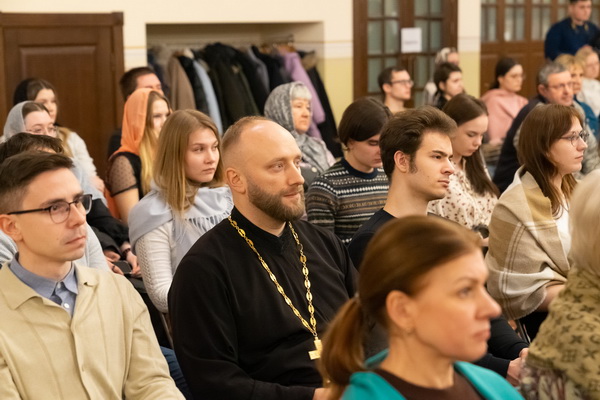 Владыка рассказал о различных подходах к изучению Евангелия и обратил внимание на первостепенную важность языка, на котором излагается текст, на то, что многие слова при переводе искажаются и теряют полноту своего исконного значения и ясности. Также студенты узнали и о других аспектах, связанных с чтением и пониманием Нового Завета. В частности, митрополит Марк подробно говорил об особенностях каждого из четырех Евангелий и об их авторах.