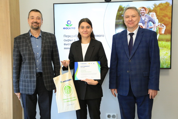В этот день начальник центра компетенций АО "Апатит", входящего в состав холдинга, В.В. Носов в рамках уникальной образовательной программы "ФосАгро: от руды до еды" поделился с обучающимися 2-го курса технологического факультета накопленным в реальном производстве опытом, экспертизой и технологиями. В завершении мероприятия, по результатам обучения студентов в области экологии и ответственного земледелия, активное участие в дискуссиях и мастер-классах, проявившие интерес и желание остаться работать в сельском хозяйстве и делать его более инновационным и современным, компания ФосАгро вручила сертификаты и памятные подарки десяти лучшим студентам 2022-2023 учебного года.