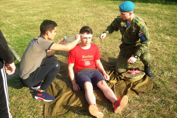 Мстер-классы включали разборку-сборку автоматов АК-74 М, снаряжение магазина патронами, применение радиохимический защитный костюм, оказание первой доврачебной помощи и транспортировка раненного с поля боя.