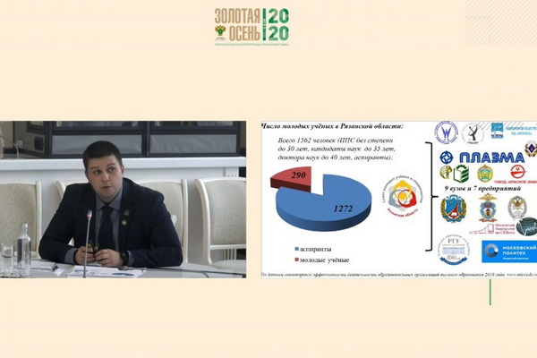 И.Ю. Богданчиков выступил с докладом «О мерах поддержки молодых учёных (на примере Рязанской области)», в котором рассказал о деятельности молодых учёных в регионе, об их взаимодействие через советы молодых учёных, о губернаторских премии молодым учёным и грантах на развитие молодежных проектов, а также о мероприятиях по поддержке молодых учёных реализуемых в Рязанском государственном агротехнологическом университете имени П.А. Костычева.